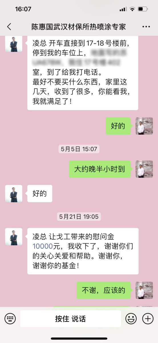 感谢有您 陈惠国先生: 您好! 近闻您身体有恙,我司同仁甚是关切! 一直以来,您总是关心我司在热喷涂领域的发展和进步,特别是在设备的发展方向上给予了充分的指导和建议!为我司在该领域的拓展和成长无私贡献了自己的学识和专长,我们对此牢记于心!在此,我们表示深深的谢意! 特从bepaly官方app下载 属下的【凌铿慈善基金会】中给出壹万元的慰问金对您表示感谢和慰问! 我们真诚地祝愿并期待您早日恢复健康! 再次诚挚地感谢您! bepaly官方app下载 二零二四年五月二十一日